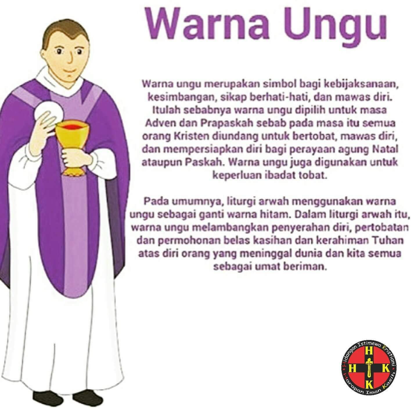 Gereja Katolik Arti Warna Liturgi Ungu Warna Ungu Merupakan Simbol Bagi Kebijaksanaan Kesimbangan Sikap Berhati Hati Dan Mawas Diri Itulah Sebabnya Warna Ungu Dipilih Untuk Masa Adven Dan Prapaskah Sebab Pada Masa